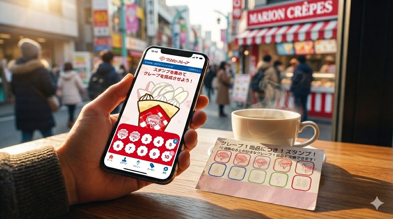 2025年9月のアプリリリースから4ヶ月。そろそろスタンプが10個貯まり、「クレープ引換券」がアプリに鎮座している頃ではないでしょうか?